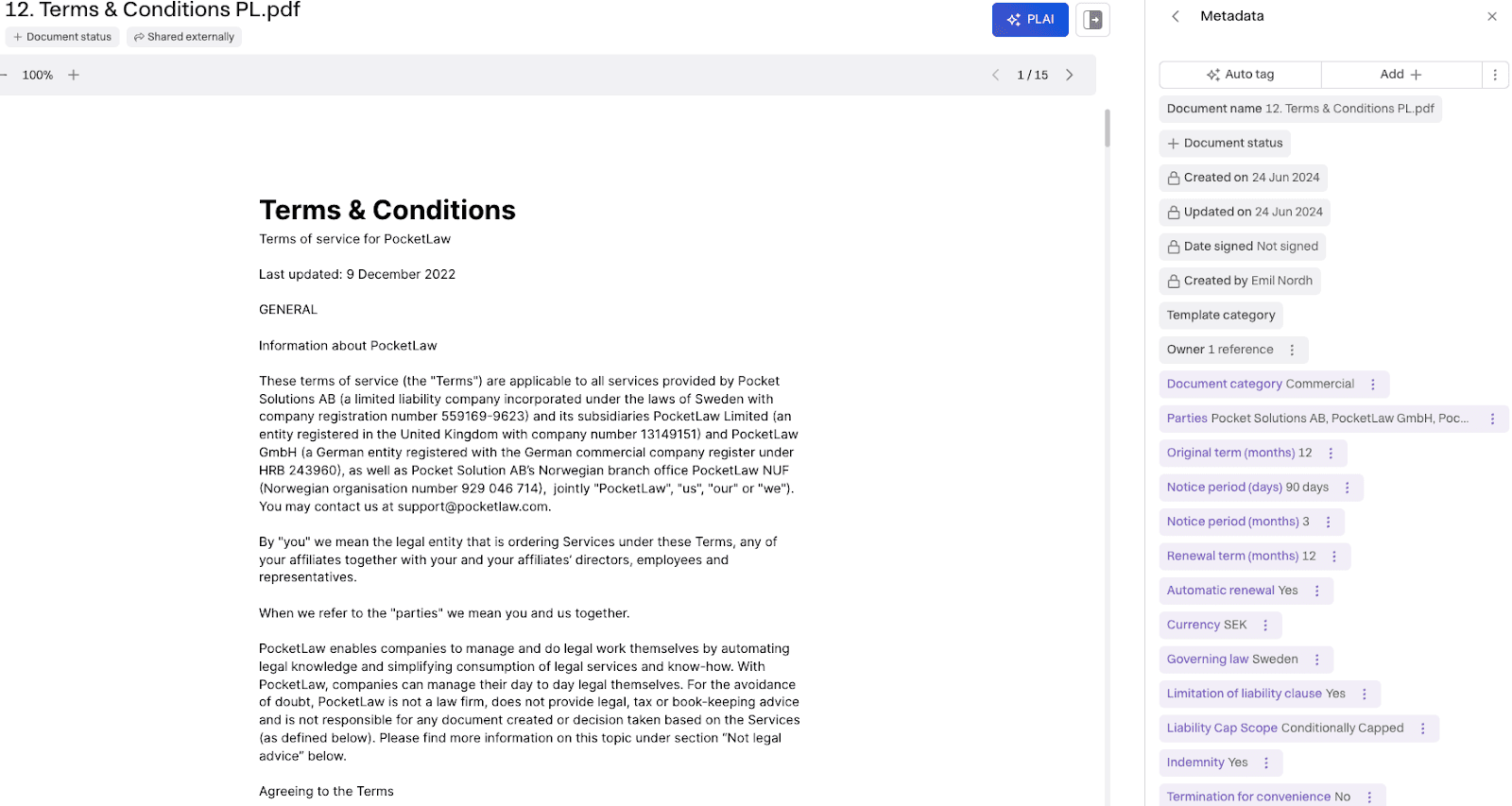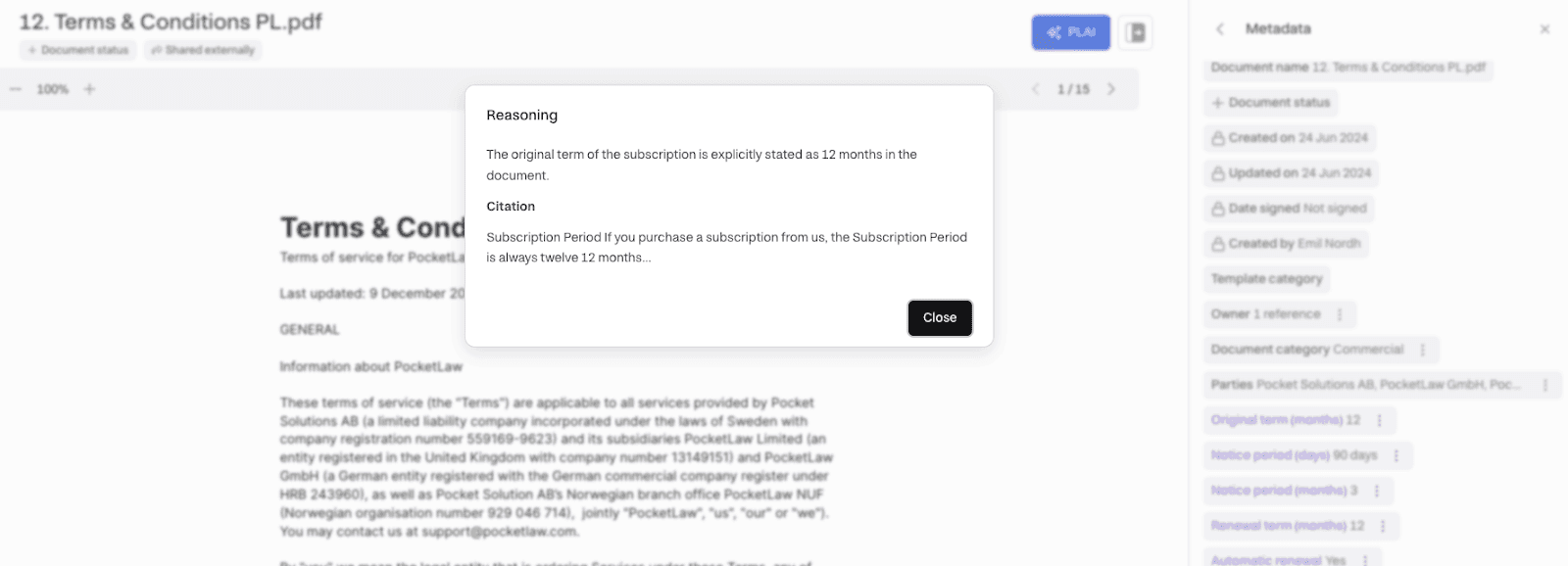 With these features, metadata extraction becomes just one piece of a complete solution, empowering legal teams to make data-informed decisions throughout the contract lifecycle.