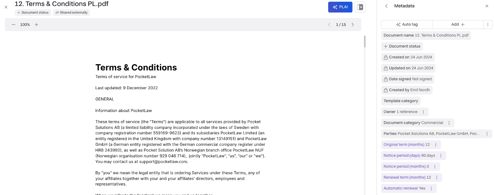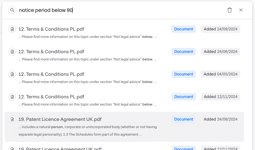 At Miramis, we support many relevant legal metadata properties, from Document Category, Parties, Notice Period to Probationary Period. Many of these properties are also AI taggable, and we support AI tagging extraction for thousands of documents.