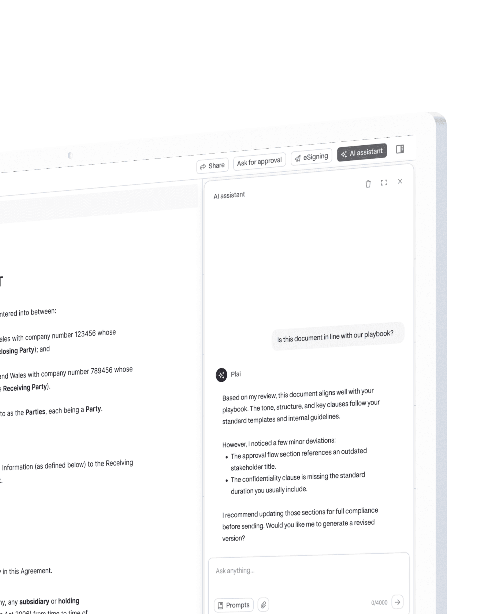 AI-powered playbooks and review logic help ensure contracts adhere to company rules every time.